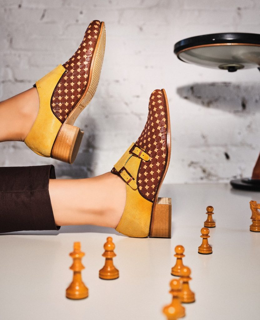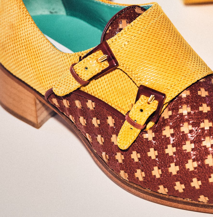 El modelo ARLET está elaborado artesanalmente en España, combinando ante color amarillo mostaza con pieles de tacto suave trenzadas a mano. Minimizando las costuras de corte y proporcionando un efecto malla, que aporta gran flexibilidad de contorno y adaptabibilidad a los pies más delicados y exigentes, para una comodidad única en cada paso. Doble hebilla estilo carey, regulables para una buena sujeción.