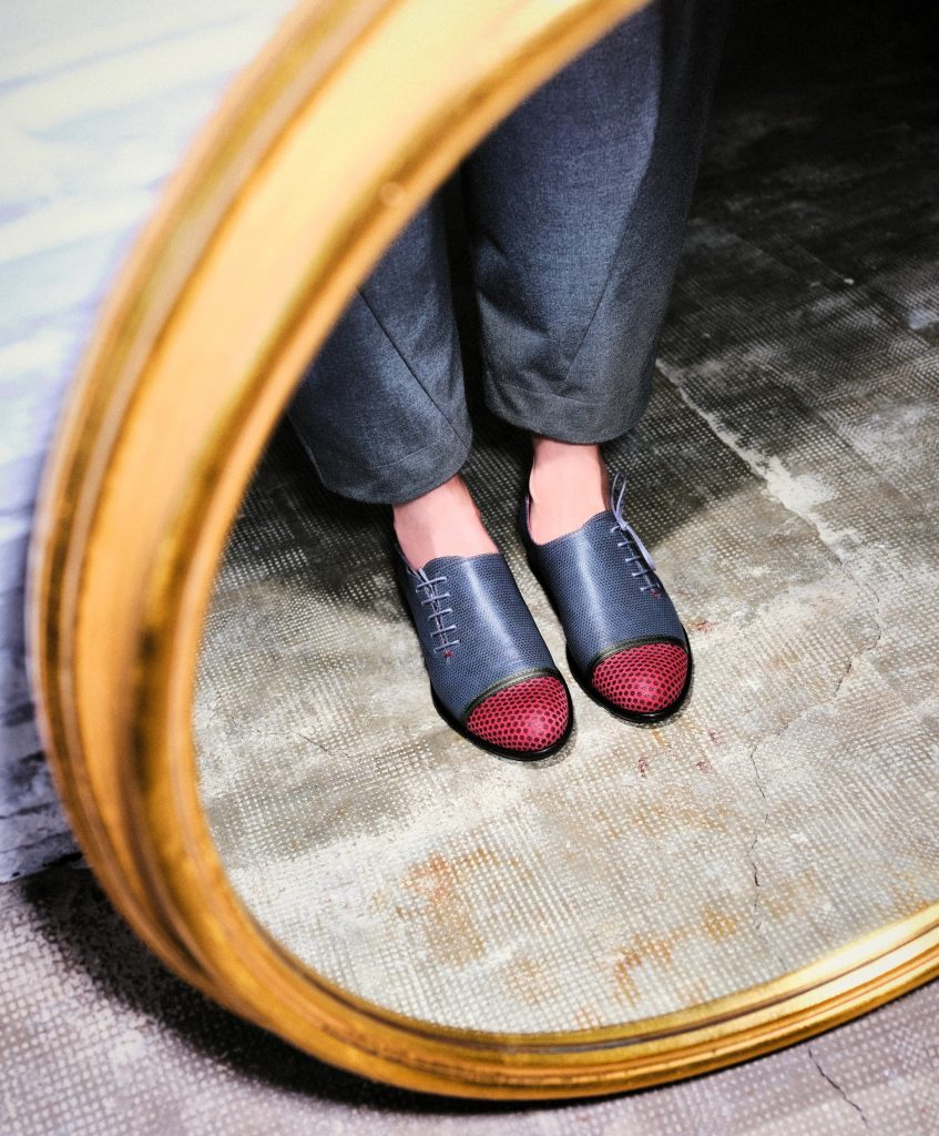 El modelo ARPEGGIO está elaborado artesanalmente en España con una piel muy suave y flexible color gris. Cierre mediante cordones laterales al tono.