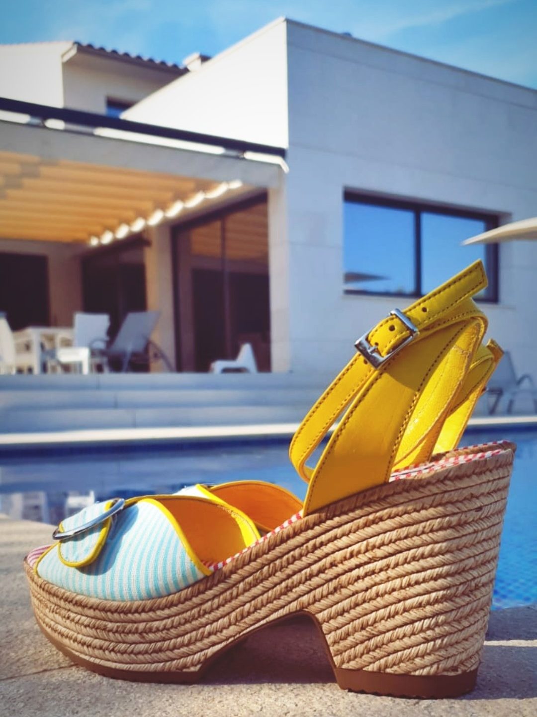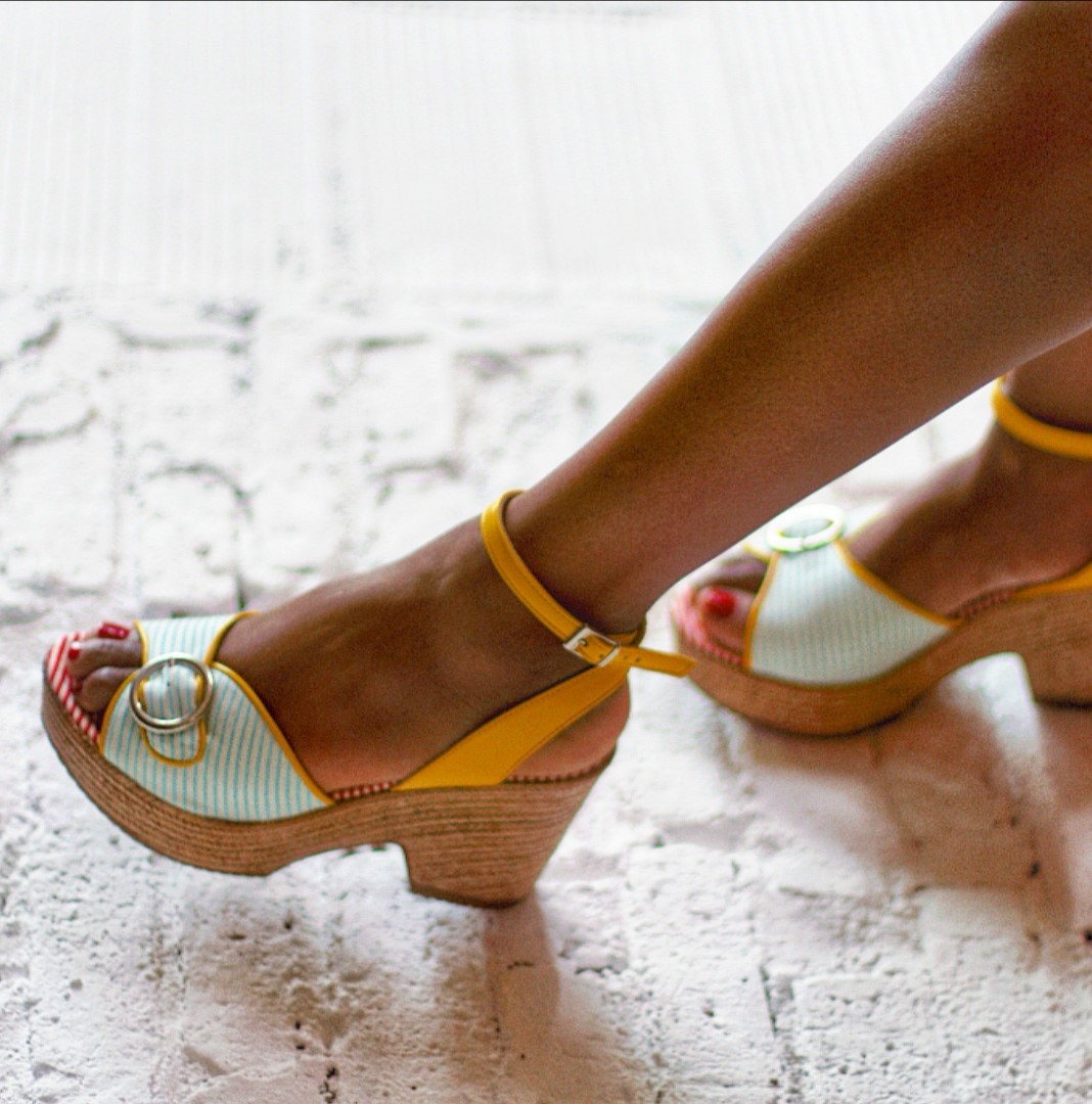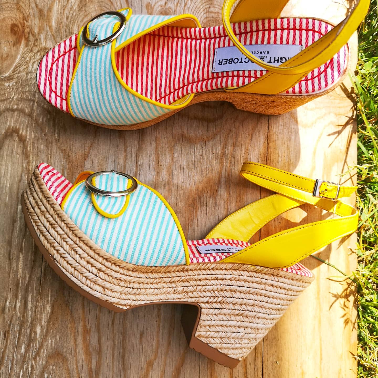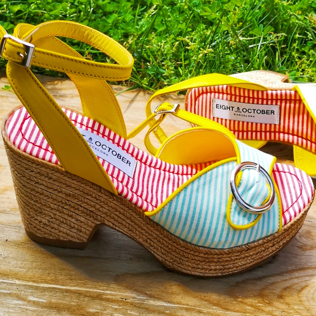 El modelo CAPRI está elaborado artesanalmente en España, combinando la frescura del algodón diseño navy con pieles lisas. Pala con hebilla redonda plateada para regular su ajuste a diferentes anchuras. Favorecedora pulsera fina de piel, cruzada por el talón para garantizar una mejor sujeción y adaptabilidad. Cierre con hebilla plateada y broche regulable. Sorprendentemente ligeras, su tacón de cuña es muy estable, y su altura queda cómodamente compensada por la plataforma, que estiliza y evita la inclinación excesiva del pie.